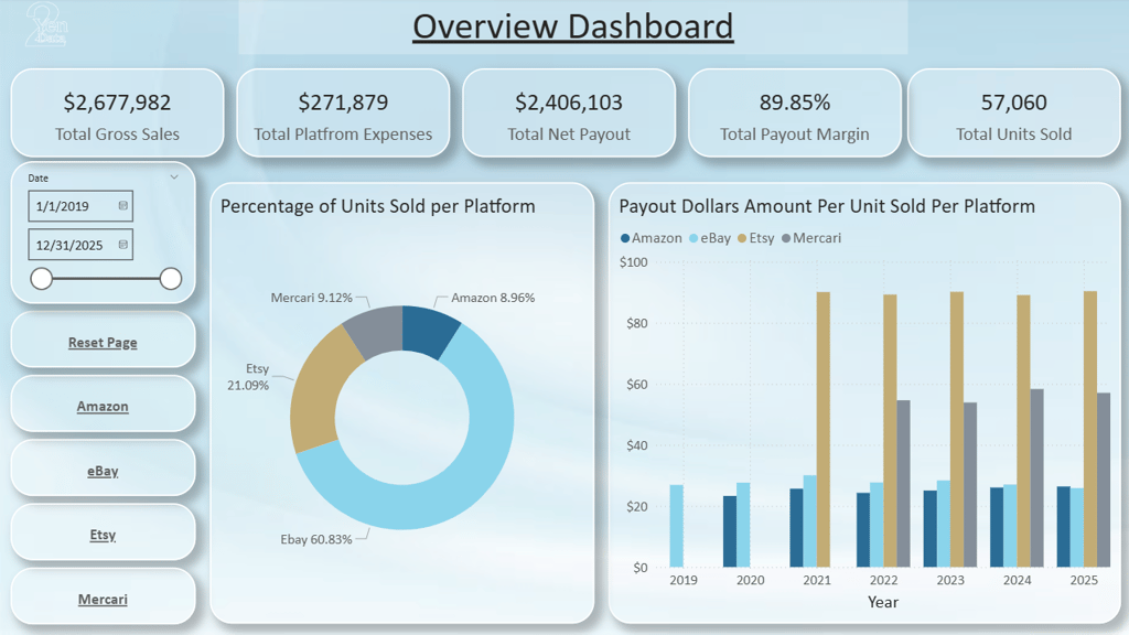 I was genuinely excited to build this dashboard because I kept seeing the same problem over and over—people selling online struggle to unify sales data from multiple platforms. While this challenge exists in many industries, it’s especially painful in eCommerce. Sellers may operate across Amazon, eBay, Etsy, Shopify, and sometimes regional platforms like Shopee, Lazada, Temu, or fast-growing marketplaces like Mercari.